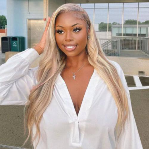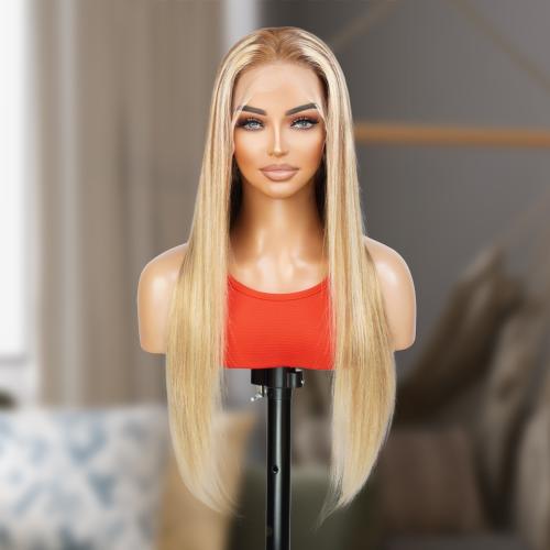 UpScale 100% Human Hair Glueless Pre Plucked 13x4 Lace Frontal Wig Ash Highlight Blonde Straight 22"