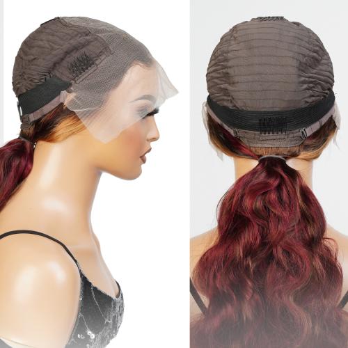 UpScale 100% Human Hair Glueless Pre Plucked 13x6 Lace Frontal Wig Red Blonde Highlight Body Wave 24"
