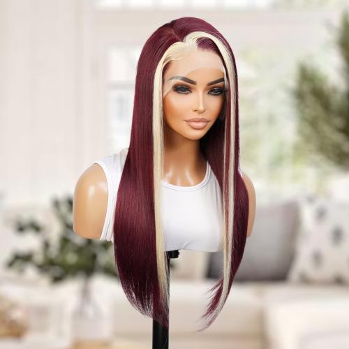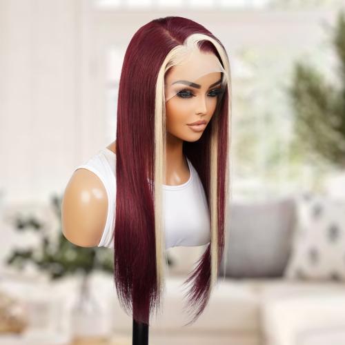Material Brazilian Hair Hair Color Redwine and Blonde Skunk Stripe Highlight Hair Quality 100% Virgin Hair Cap Structure 13x4 Lace Frontal
