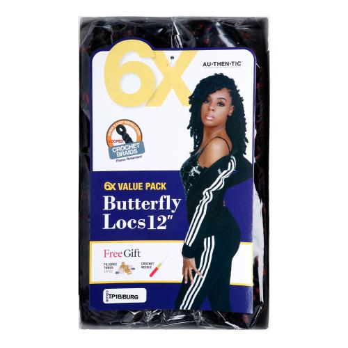 Authentic Synthetic Hair Crochet Braids 6X Value Pack Butterfly Locs 12"