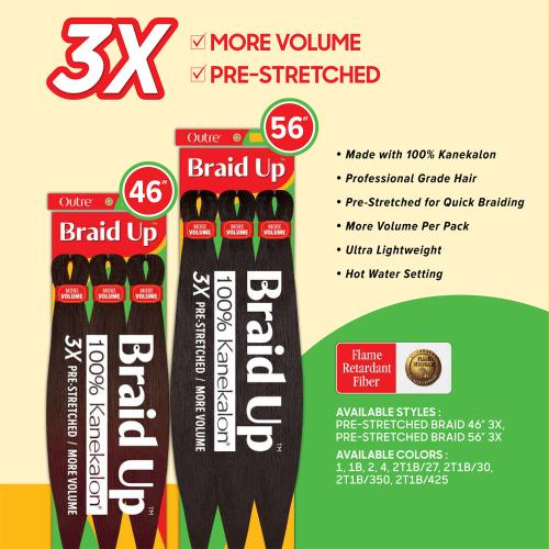 BOX DEAL Outre Braids Braid Up Kanekalon 3X Pre Stretched Braid 56" (50 packs/box)