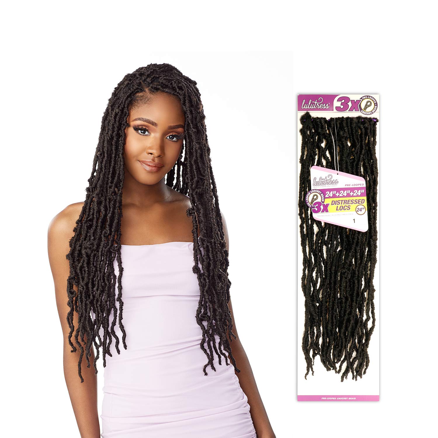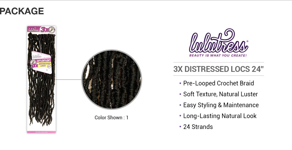 Sensationnel Crochet Braids Lulutress 3X Pre-Looped Distressed Locs 24" (5-PACK, SM1B/30)