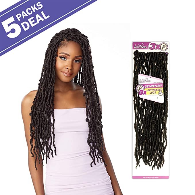 Increase quantity for Sensationnel Crochet Braids Lulutress 3X Pre-Looped Distressed Locs 24" (5-PACK, SM1B/30)