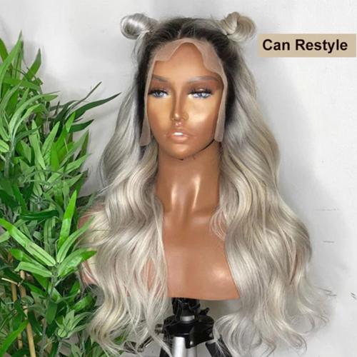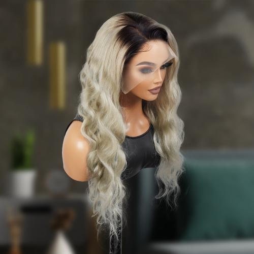 UpScale 100% Human Hair Glueless Pre Plucked 13x4 Lace Frontal Wig Ombre Icy Ash Blonde Body Wave 24"