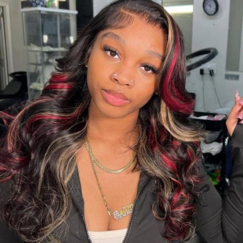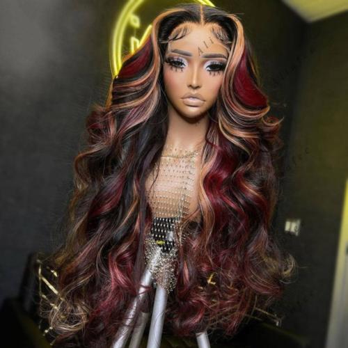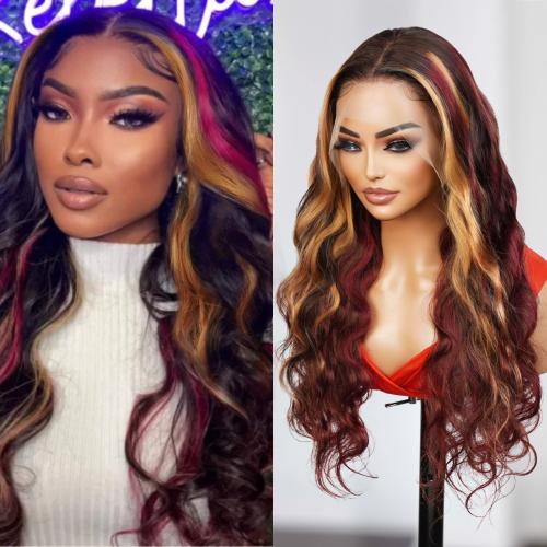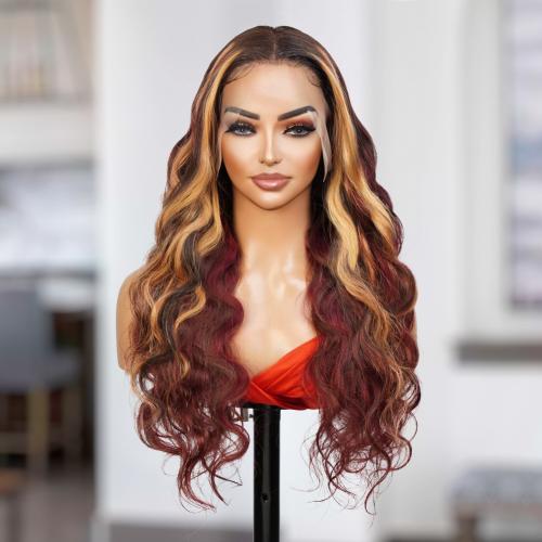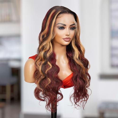 UpScale 100% Human Hair Glueless Pre Plucked 13x6 Lace Frontal Wig Red Blonde Highlight Body Wave 24"
